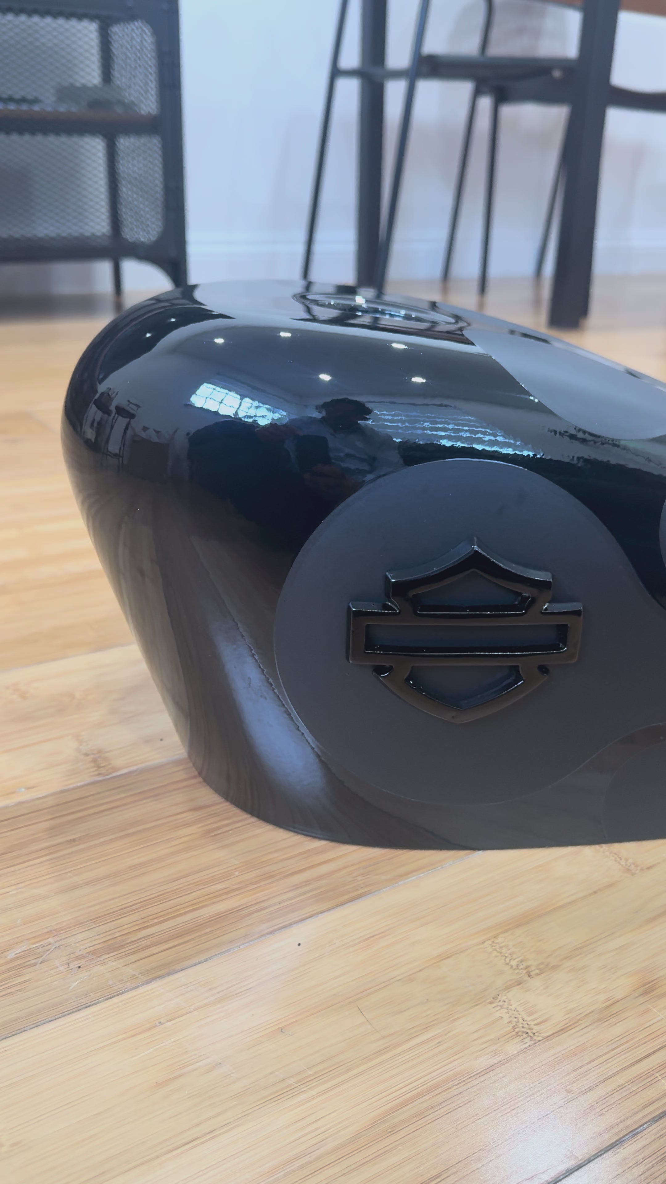 A fiberglass handmade tank cover, foam with a velvet upholstery inside that keeps your original paint just safe, doesn’t rattle or make any noises. even in high speeds.