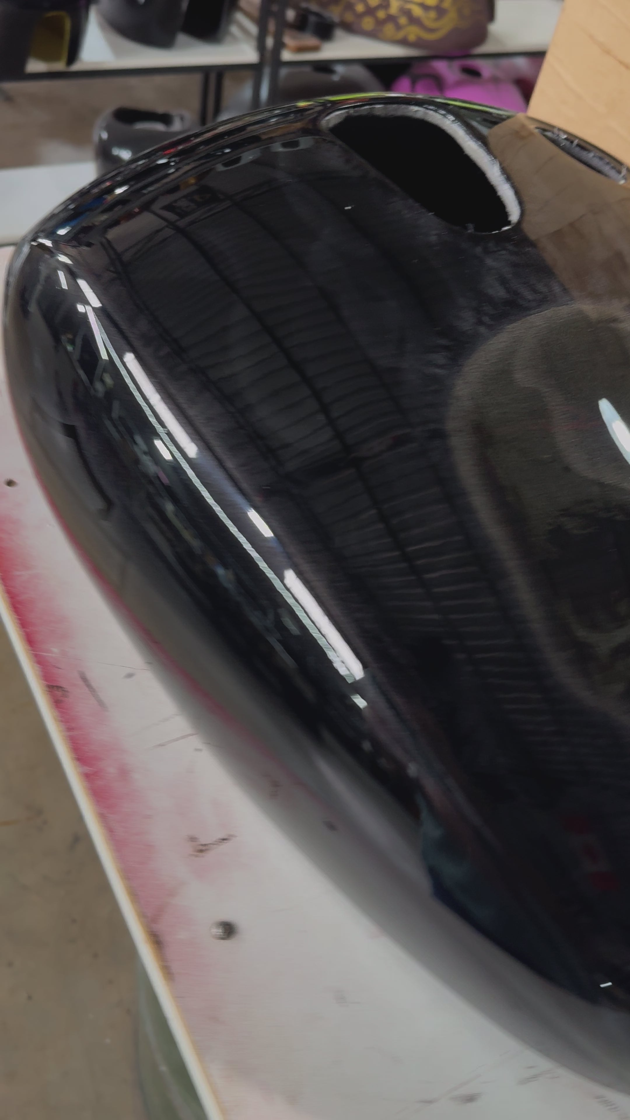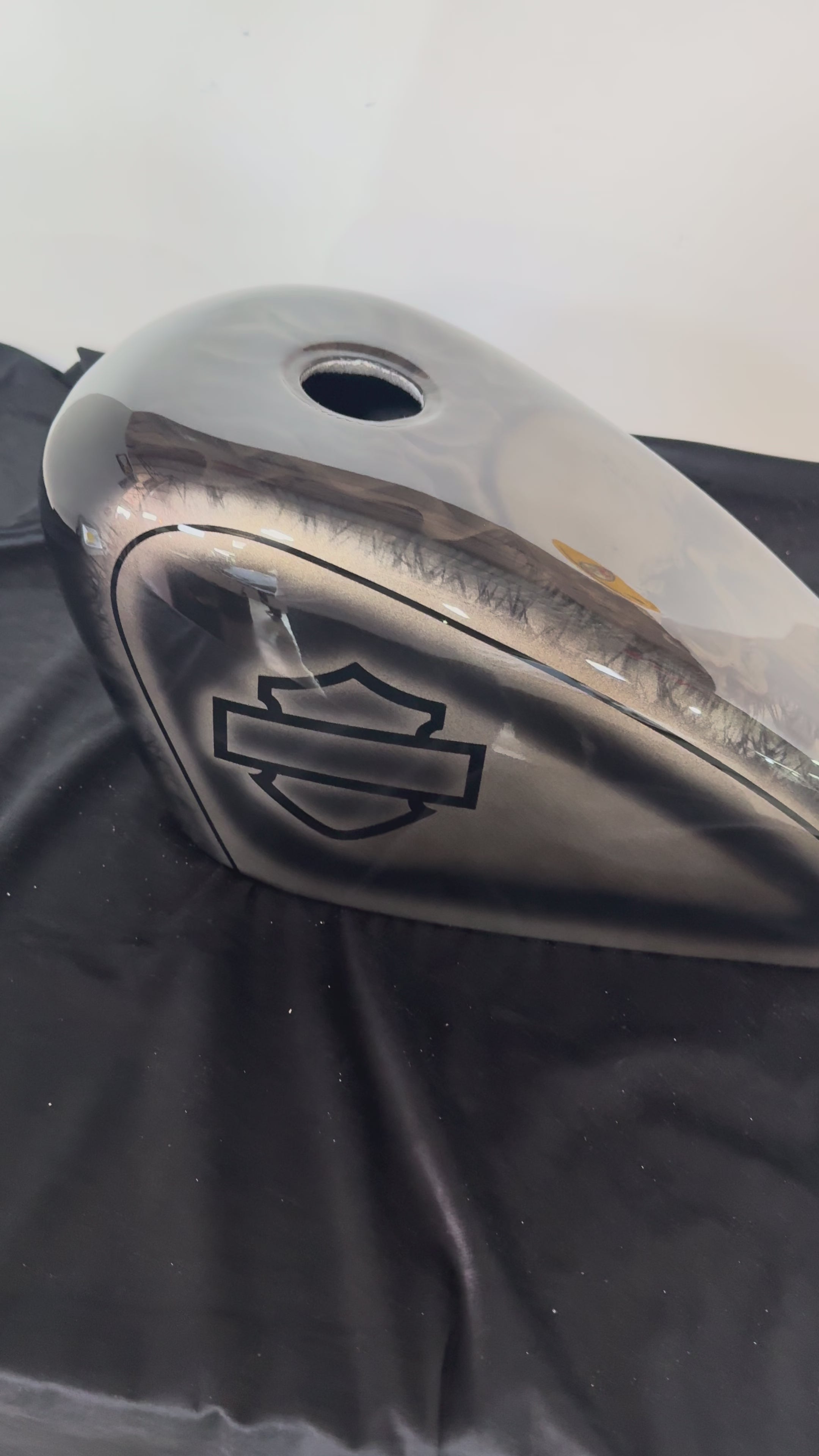 A fiberglass handmade tank cover, foam with a velvet upholstery inside that keeps your original paint just safe, doesn’t rattle or make any noises. even in high speeds.