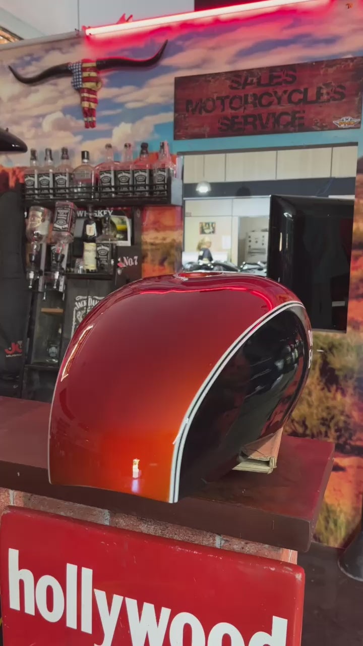 A fiberglass handmade tank cover, foam with a velvet upholstery inside that keeps your original paint just safe, doesn’t rattle or make any noises. even in high speeds.