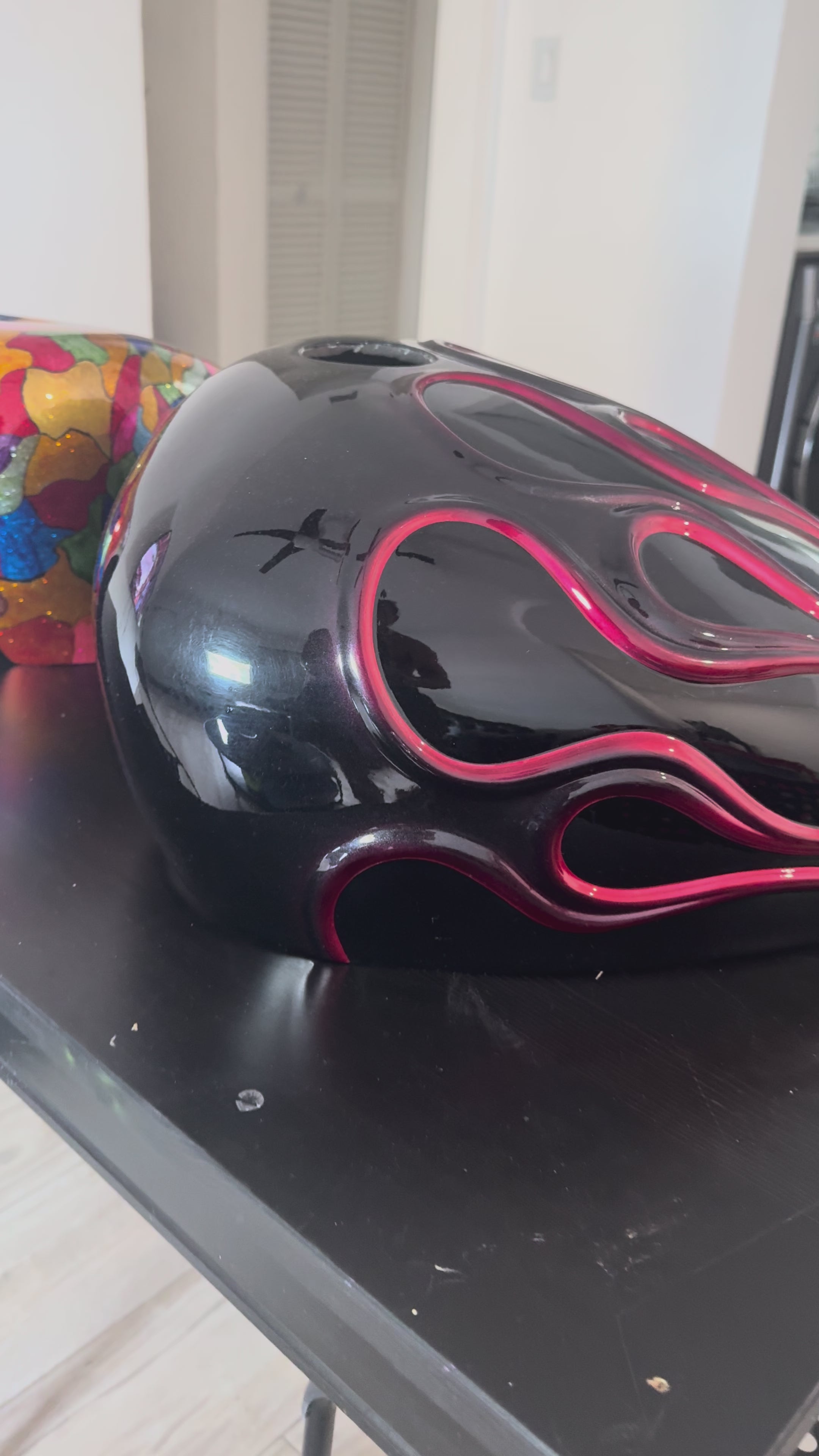 A fiberglass handmade tank cover, foam with a velvet upholstery inside that keeps your original paint just safe, doesn’t rattle or make any noises. even in high speeds.